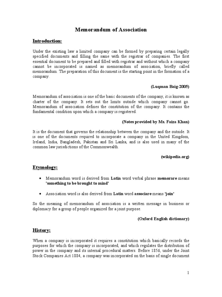 Memorandum & Articles Of Association / In basic terms, the company do i have to provide my own memorandum and articles?. Memorandum of association is the charter of the company. Memorandum and articles are public documents. The articles of association is a governing document that outlines the purpose of the company, the rights and responsibilities of its members and directors, and the way in which the company must operate as. The memorandum and article of association act as a charter to the companies through which the companies are regulated in india. The memorandum of association and the articles of association are two of the companies' documents, which are differentiated by their requirement at the time of the registration.