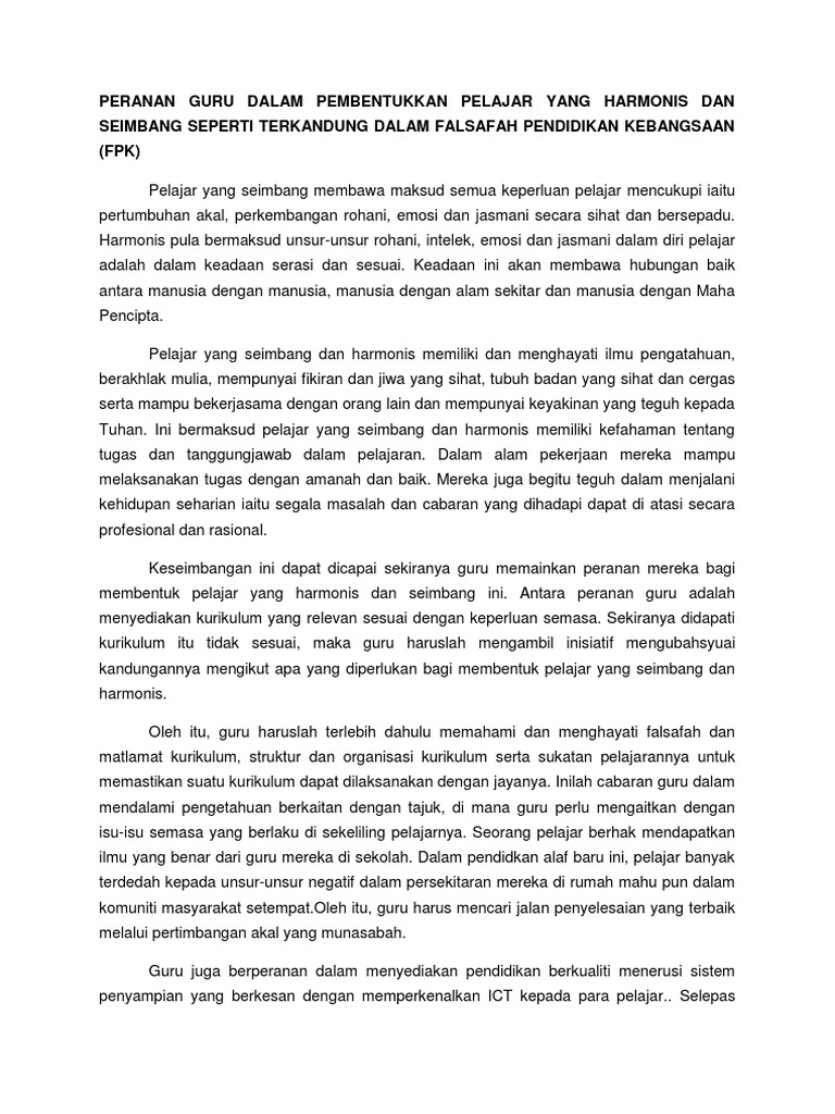 Peranan Guru Dalam Merealisasikan Fpk / Ini merupakan tugasan dalam subjek kpf 3012: